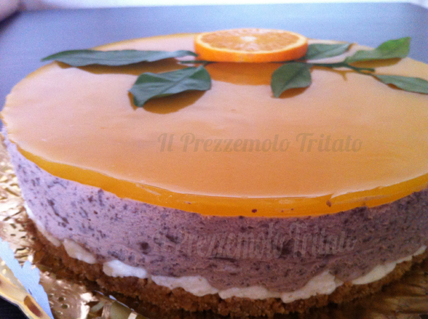 La siguiente tarta, vistosa es un rato. Desde que la vi me he sentido tentada por ese color naranja, totalmente natural, que le da el zumo de naranjas. Se trata de una Mousse de chocolates blanco y negro con gelatina de naranja que prepara Vanesa, del blog Il prezzemolo tritato. Además de riquísima, nos ahorramos el encender el horno.