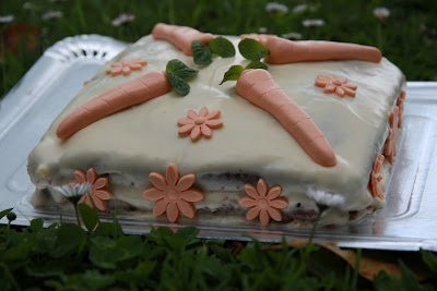 Mirad la tarta que ha preparado para su mami Patricia del blog El trasgu de las galletas. Se trata de una Tarta de zanahoria que además de buena pinta, está muy bien decorada. ¿Habéis probado alguna vez el bizcocho de zanahoria? Para los que no lo hayáis hecho aún, no dejéis de hacerlo. Que no os eche para atrás la zanahoria ya que en este caso el bizcocho no sabe a zanahoria. La función de la zanahoria es más bien la de aportarle color y jugosidad al bizcocho. Desde que lo conozco es uno de mis imprescindibles.