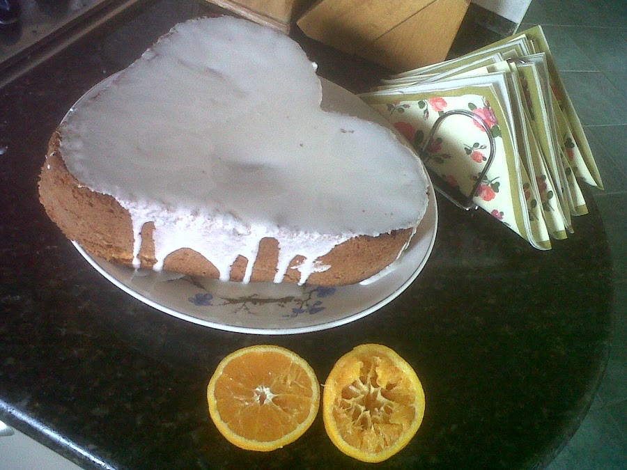 2 naranjas peladas, 2 bananas peladasy 2 manzanas cortadas en trocitos. También 2 huevos, 2 medidas de azúcar y 2 medidas de harina leudante.