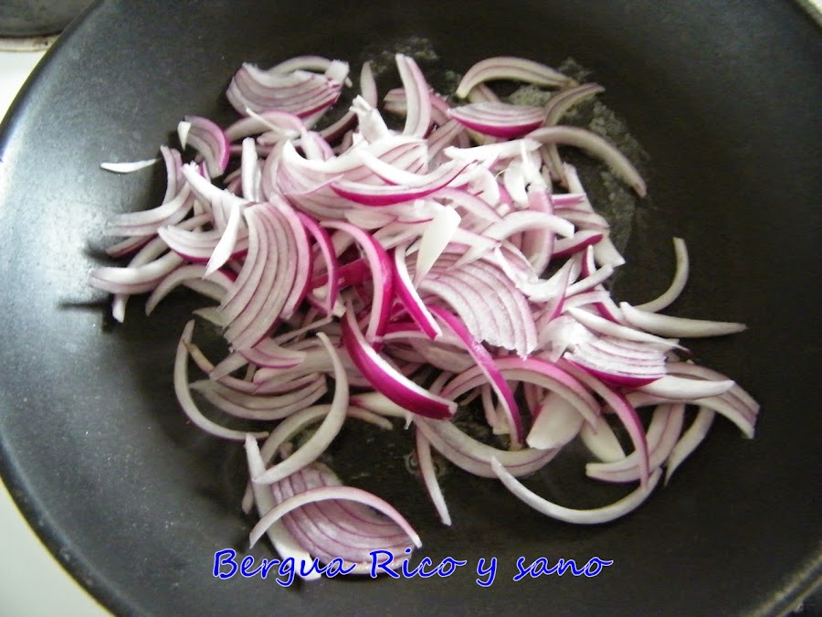 3. Calentamos un poco de mantequilla y en ella rehogamos la cebolla cortada a pluma, es decir, en una juliana finita. Espolvoreamos con romero.