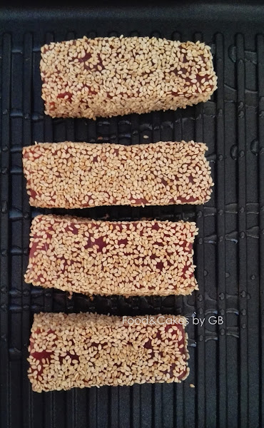 2. Pasaremos por las semillas de sésamo los lomos que hemos cortado.