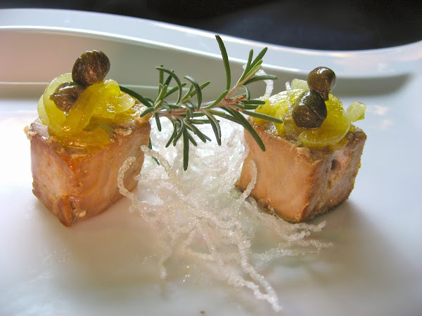 Bien, tal y como vamos haciendo en estos días hoy os planteamos otro delicioso plato, no por ello menos delicioso, o con una presentación menos vistosa TATAKI DE BONITO MARINADO CON ALCAPARRAS, algo tan sencillo como un marinada para que el pescado nos coja el punto de sabor que le queremos dar y un acabado en plancha como colofón a la sencillez y la delicadeza de un plato netamente Japonés. El cual espero que os guste tanto como a mí. Un saludo.