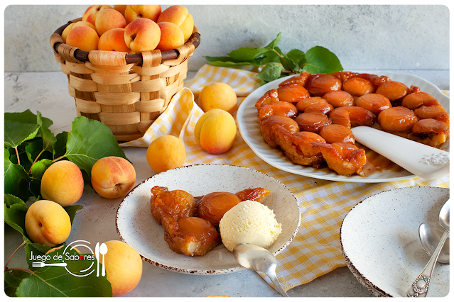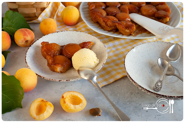 Cierto o no, el caso es que nuestro albaricoquero ha dado kilos y kilos de fruta este año. Hemos hecho mermelada, hemos regalado cajas de fruta y todavía nos ha sobrado para hacer postres como esta tarta tatín de albaricoques que hoy os presentamos. La llamamos “tatín” aunque la clásica es la de manzana que ya hicimos en su día (ver Tatín de manzana) y cuya historia y descubrimiento explicamos en la introducción. No nos repetiremos. Solo deciros que tatíns también se pueden hacer de pera, de piña, de plátano Se trata de hacer una tarta invertida.