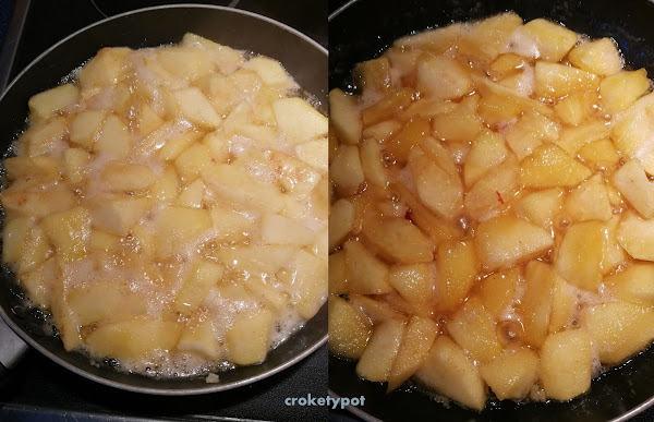 Cuando lleva sobre unos cinco minutos, añadimos la manzana y la dejamos cocer 10 minutos.