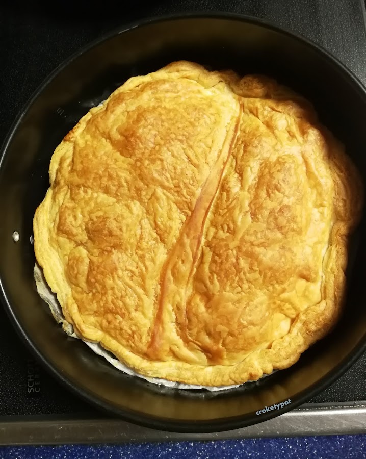Lo ponemos en el horno unos 30 o 40 minutos, si dora mucho el hojaldre lo cubrimos con papel de aluminio.