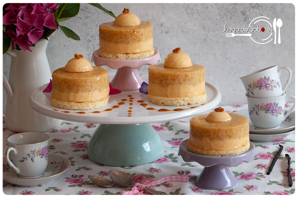 Agregar la semilla o la esencia de vainilla y cuando esté templado poner sobre la tatin de manzana. Cuando haya gelificado, congelar.