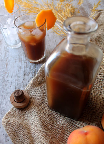Mezclamos el té con el sirope de melocotón y dejamos enfriar.