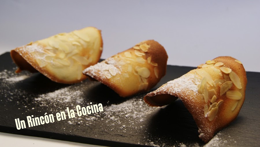 - Metemos al horno asta que se doren, en ese momento las sacamos y con la ayuda de una espátula las despegamos y dejamos enfriar presionando sobre un rodillo, una botella o lo que tengamos más a mano con forma de tubo.