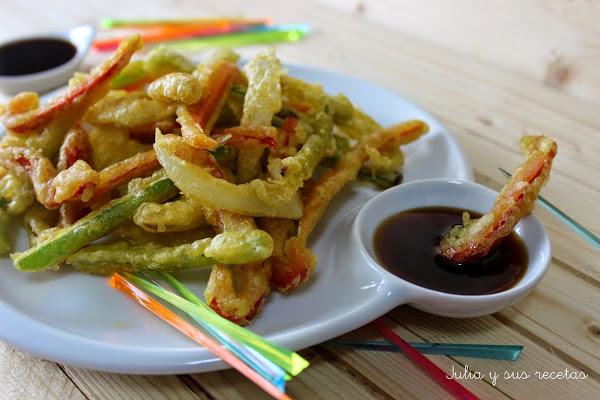 La forma mejor para hacer la tempura es cortar los alimentos en tamaño de bocado que no sean muy gruesos pues la fritura no debe durar mas de tres minutos y si son demasiado gruesos quedarían crudos.