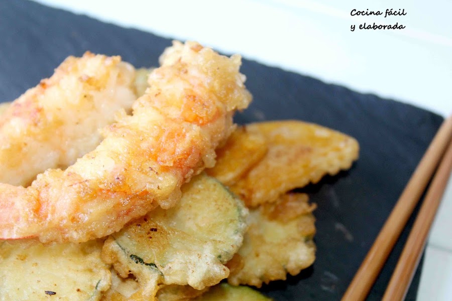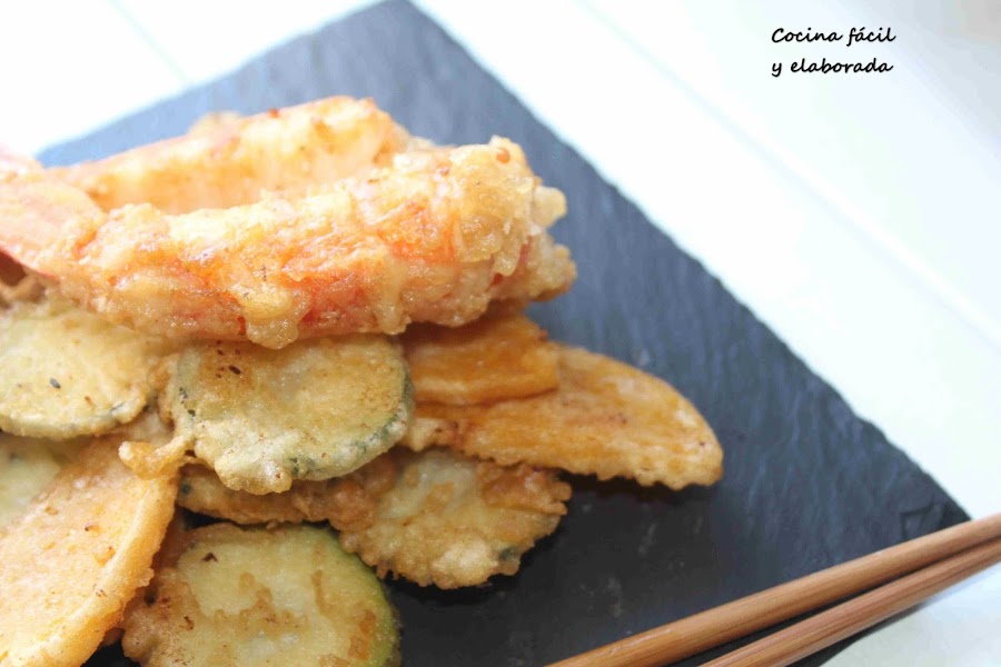 La tempura es uno de los platos más de moda en la cocina japonesa. Lo curioso de esta técnica es que su origen no es japones, lo llevaron allí los misioneros jesuitas portugueses y españoles. La verdad es que no importa el origen, el resultado es lo bueno,jeje. Esta fritura rápida de 3 minutos en aceite a 180ºC da una textura crujiente muy especial y que crea adicción, ya os lo advierto.