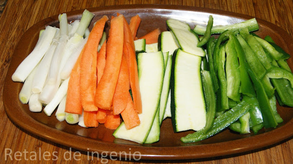 Como veis en la foto, las verduras las he cortado muy finas para que se hagan enseguida.