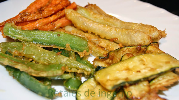 Mezclar la o las harinas que hayais elegido en un bol con una pizca de sal y añadir el agua muy fría poco a poco sin dejar de remover hasta obtener una mezcla un poco espesa pero no demasiado, lo justo para que se adhiera una capa muy fina en las verduras antes de freírlas en una sartén con abundante aceite de oliva.