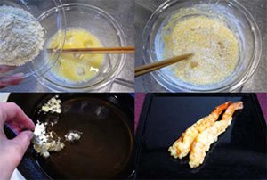 4. El Témpura, una vez ya frito, se moja ligeramente en una salsa antes de comer. Para la salsa de Tempura mezclar el caldo Dashi, el Mirin y la salsa de soja.