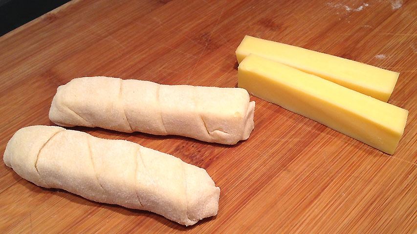 Corta el queso en barritas del tamaño de un dedo más o menos.