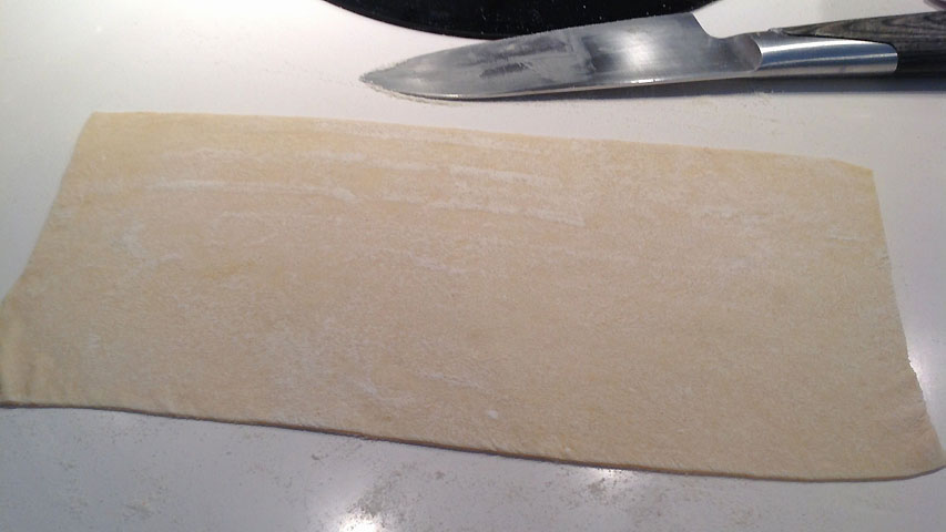 Una vez que la masa tiene el grosor apropiado la recorto para que quede un rectángulo.