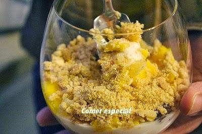 Si suelen cenar poco, el martes les vendrá de maravilla esta copa de yogur sin lactosa con frutas y galletas.