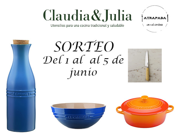 Seguimos celebrando el quinto aniversario del blog sorteando otro lote de productos. En esta ocasión desde Claudia&Julia han querido colaborar aportando un magnífico lote valorado en 80 euros. Por si no conocéis Claudia&Julia es una tienda especializada en utensilios para cocinar de forma tradicional y saludable. Utensilios de calidad y con diseños tan bonitos que invitan a no parar de cocinar. Además se completa con un blog precioso donde podemos disfrutar de las recetas elaboradas con todos los productos de la tienda. Y todo de una calidad excelente avalado por las propias marcas de los productos. Así como los productos que vamos a sortear aquí a partir de hoy. Empezamos con el bol o ensaladera de 20 cm. de la marca Le Creuset y por la botella de agua también de Le Creuset. Dos artículos que sólo se venden en exclusiva en España a través de Claudia&Julia y que el ganador podrá decidir el color que prefiere. También de Le Creuset tenemos una mini cocotte naranja con pomo naranja. Y para completar el lote un cuchillo de 12 cm. de la marca Pallarés. Como veis es un lote que os vendrá muy bien para cocinar este verano que ya casi llega y con el que poder presumir en vuestras mesas. Para conseguirlo sólo tenéis que dejar un comentario diciendo que queréis participar con vuestro nombre y correo electrónico. También os invito a que os hagáis fan de la página de Claudia&Julia de Facebook y que os suscribáis a su newsletter para recibir todas las novedades del blog así como sus promociones en la tienda. El regalo sólo se entregará en la Península y en Baleares. El plazo comienza hoy y acaba el día 5 a las 23:59. El sorteo se realizará a través del programa Sortea2. El nombre del ganador del concurso lo haré público el lunes día 8.