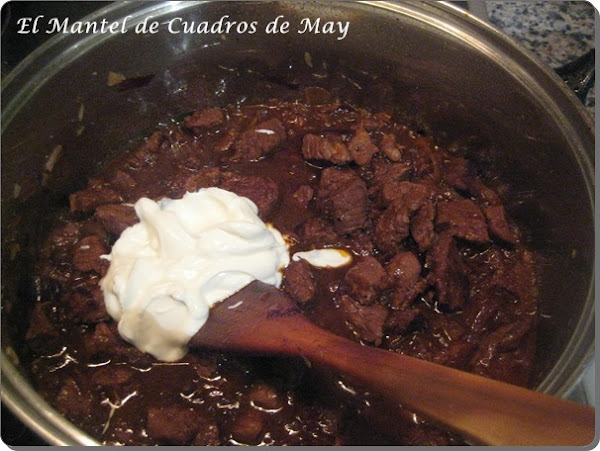 Con un poco de aceite en la olla, se dora la ternera y se reserva, luego la sala, no se hace antes porque sino soltaría sus jugos y se cocería, quedando más dura.