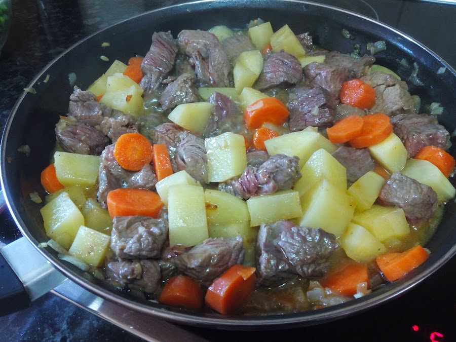 Subimos un poquito el fuego y mantenemos hasta que la ternera coja color.