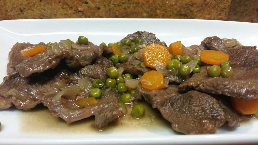 Hola holaaa!!! Esta semana vamos de recetas clásicas y que sin embargo a mí me parecen de las más sabrosas. Una receta de ternera buenísima que puedes hacer tanto en filetes como la he cocinado yo o en taquitos, en plan estofado. Se suele servir con patatas fritas cortadas en cuadritos. No las he puesto porque la he cocinado para hacer "tupers" y congelar. espero que os guste.