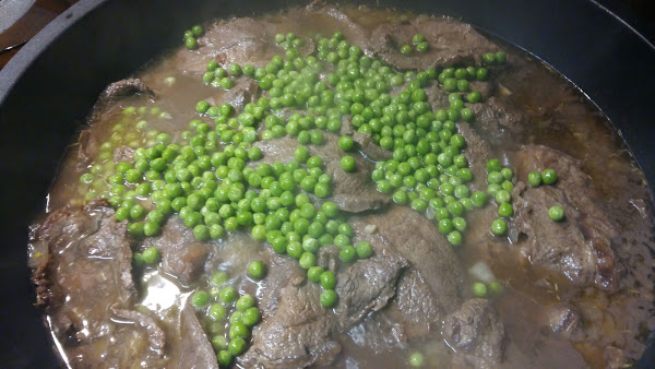 cuando lleve 10 minutos de los 20 de cocción, añadiremos los guisantes.