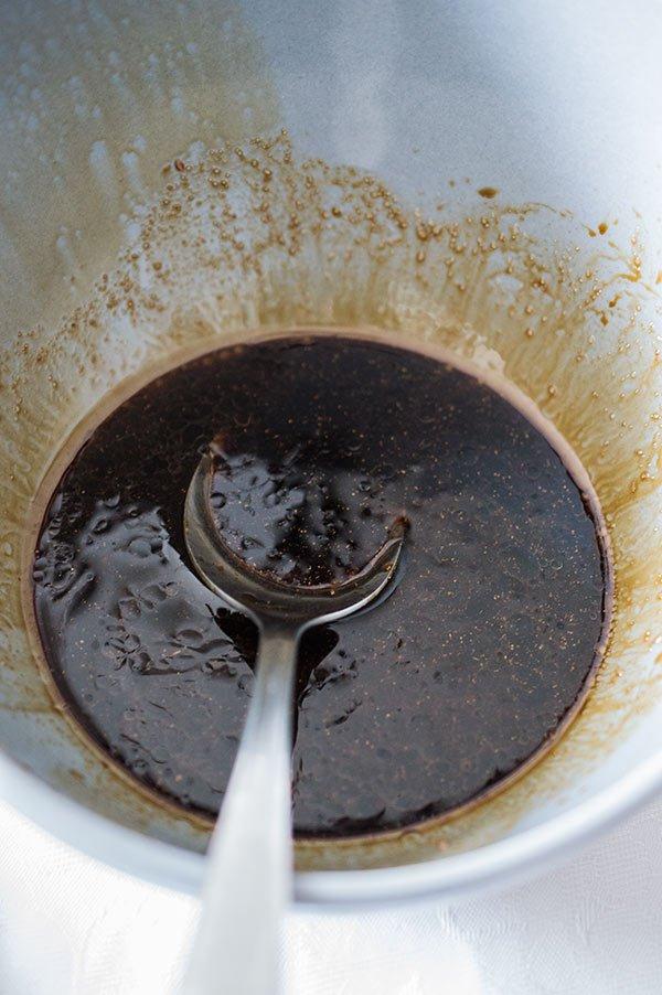 En un bol mezclamos la salsa de soja, el aceite de sésamo, el azúcar y el jengibre.
