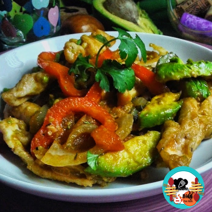 Tiras de pechuga de pollo con aguacates