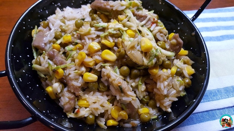 Ternera con arroz y verduras, elaboración: