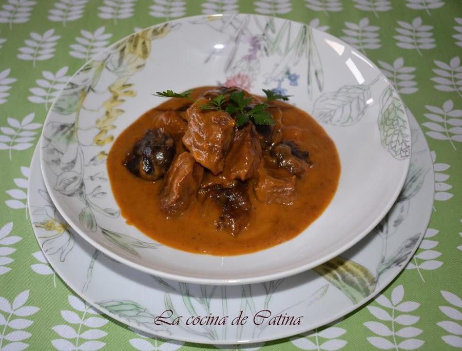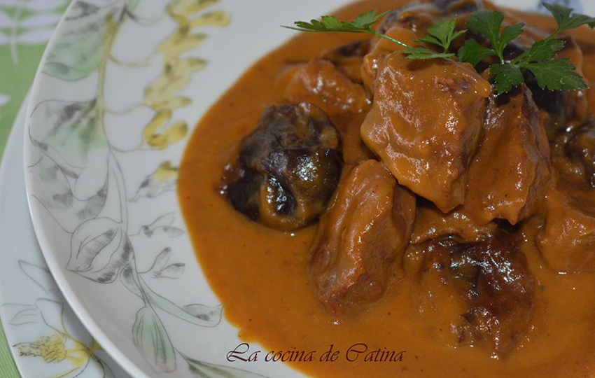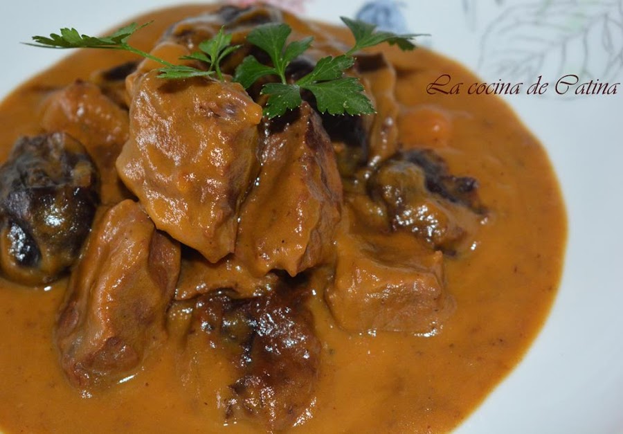 Sacamos la ternera y las ciruelas de la cazuela y pasamos por la batidora la salsa que ha quedado en la cazuela. Ponemos otra vez al fuego a calentar a fuego lento durante unos minutos, servimos las porciones de carne acompañados de las ciruelas y la salsa.