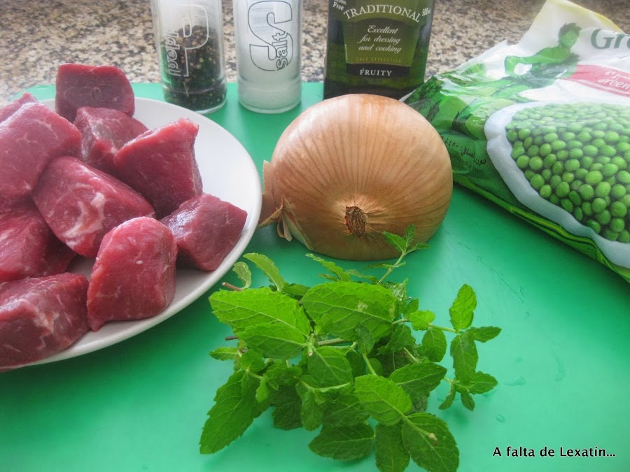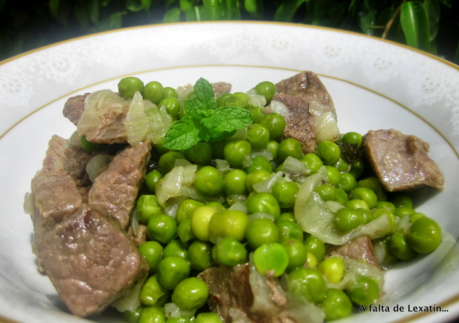Os dejo hoy un guiso de carne que a mis hijas les gustó mucho y eso que lleva "verde"... los guisantes deben ser de las pocas verduras que toleran... no tienen remedio...