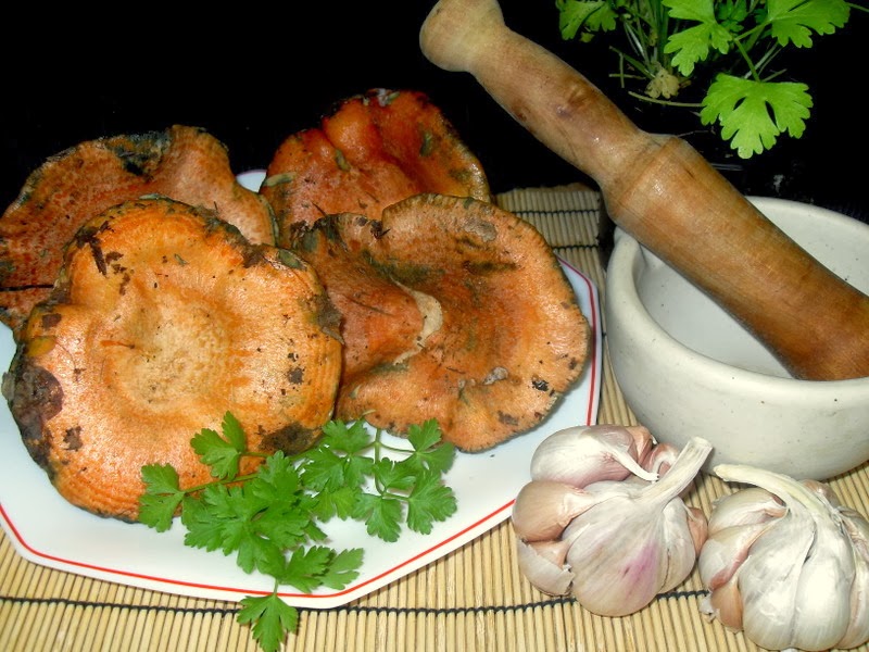 Saltear los rovellones con poco aceite y que este caliente, añadir la mezcla de ajo, perejil y sal majados en el mortero, dar unas vueltas.