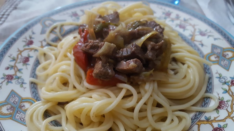 1.- Cogemos los filetes de ternera y los hacemos a tiras no muy gruesas. Reservamos