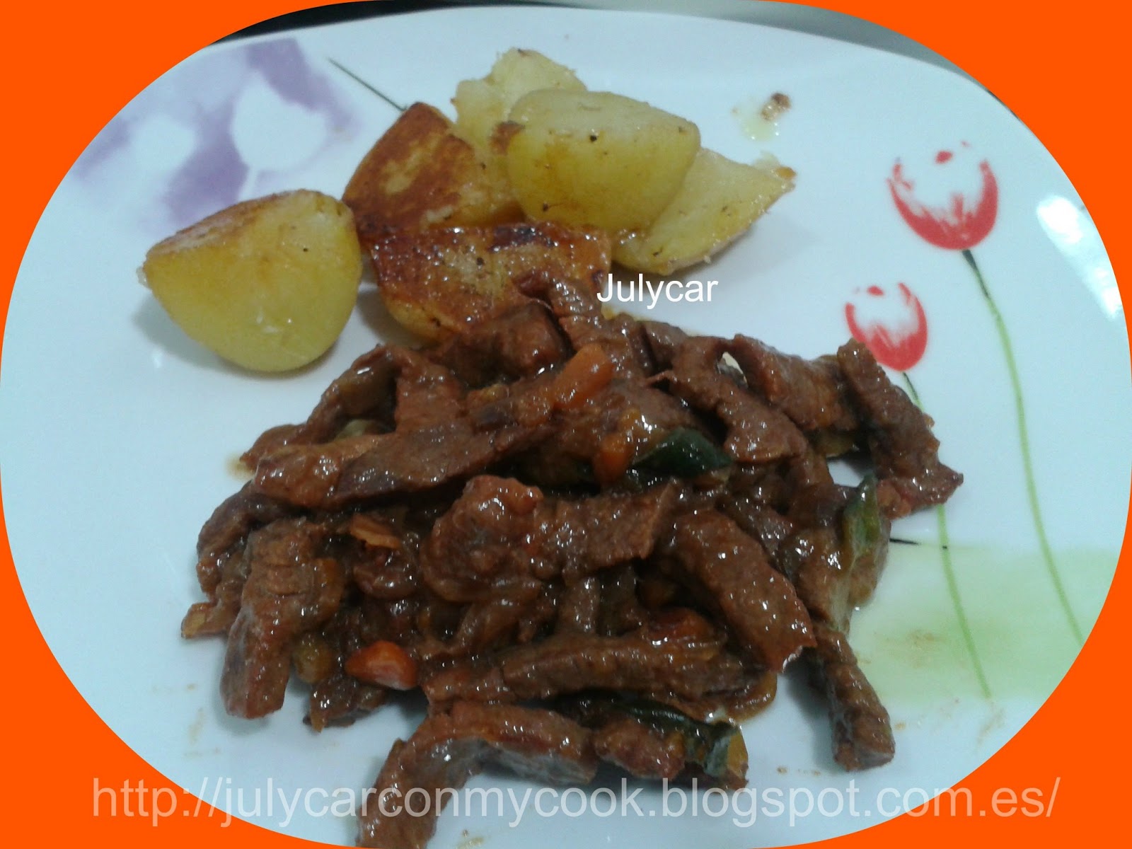 Modo tradicional, en una sarten hacer la carne, reservar, hacer las verduras y cuando estén hechas añadir la carne y la salsa de ostras, remover que se integren todos los sabores y servir acompañado de lo que mas os guste, yo con unas patatas hechas con la cocimix deluxe en menú arroz 5 minutos