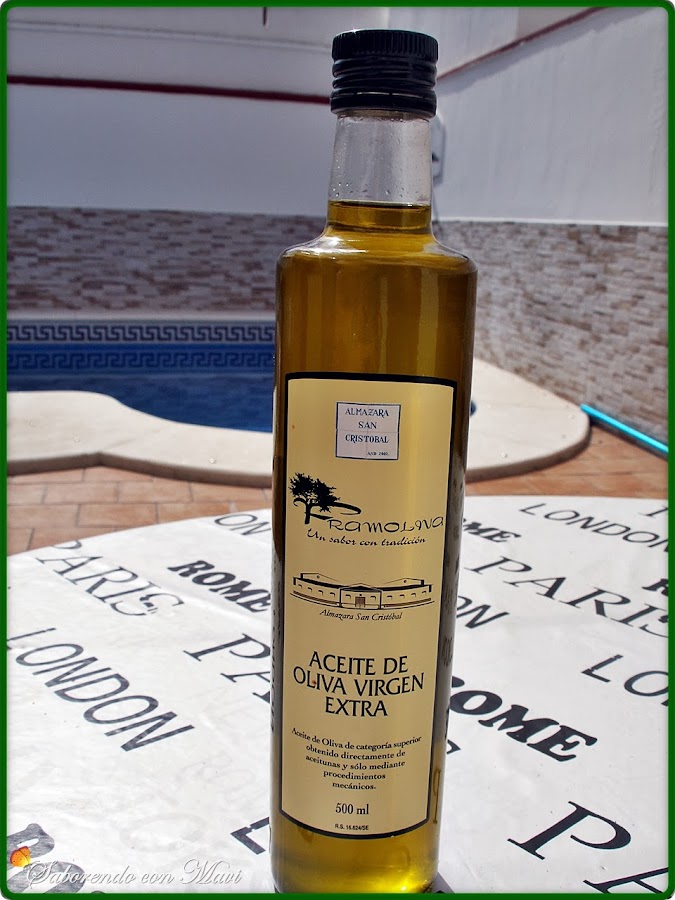 El aceite que utilicé Farmoliva es de aquí de Sevilla, de la Comarca de Aljarafe-Doñana. Es una empresa familiar que lleva ya cinco generaciones elaborando este apreciado oro liquido.