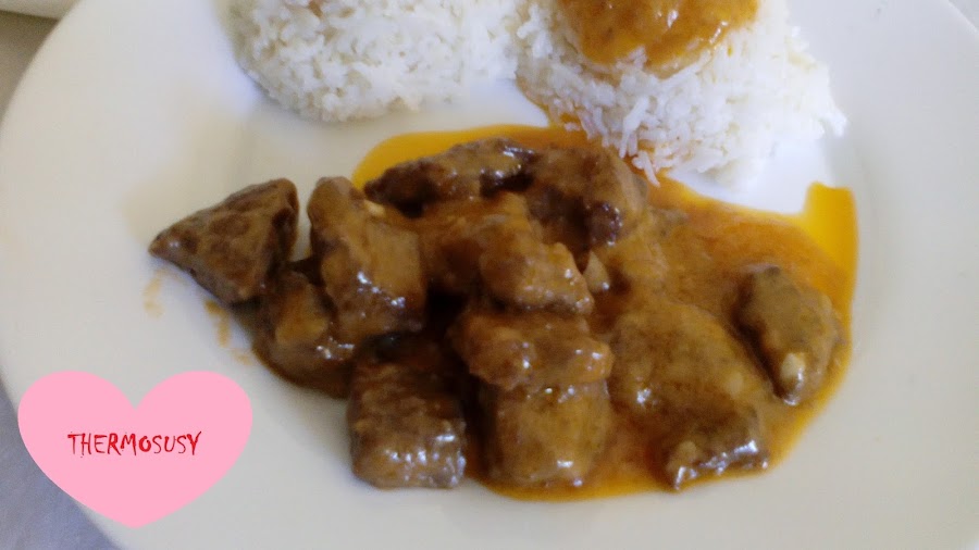 Añadimos la carne reservada, el tomate, el caldo y el vino. Programamos 20 min./ 100º /Giro izq./Vel. cuchara. Retiramos la carne y trituramos la salsa 30 seg./Vel. 10.