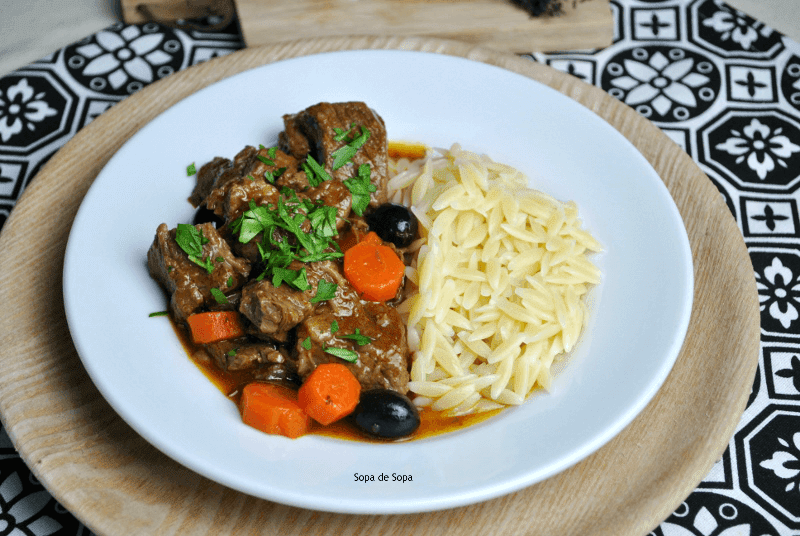 Echarlas en la carne al igual que las aceitunas y seguir cociendo 45 minutos más.