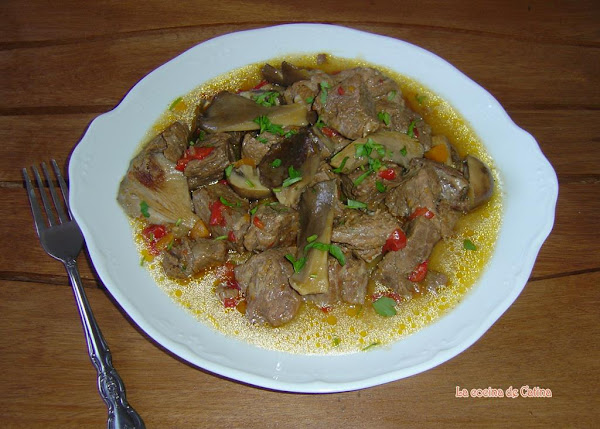 Si lo hemos cocinado en olla rápida, cuando podamos abrir la olla incorporamos las setas y cerramos la olla de nuevo y cocemos otros cinco minutos. Si lo cocinamos en olla tradicional añadimos las setas y cocemos a fuego lento 20 minutos más.