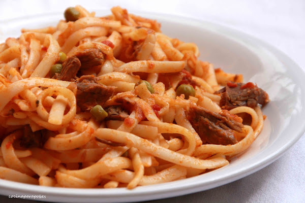 Hoy os traigo un plato saludable y sabroso, una rica ternera guisada con verduras, la cual comimos como plato único acompañada de una ensalada y también aprovechamos al día siguiente para comer un poco que sobró acompañando un poco de pasta.