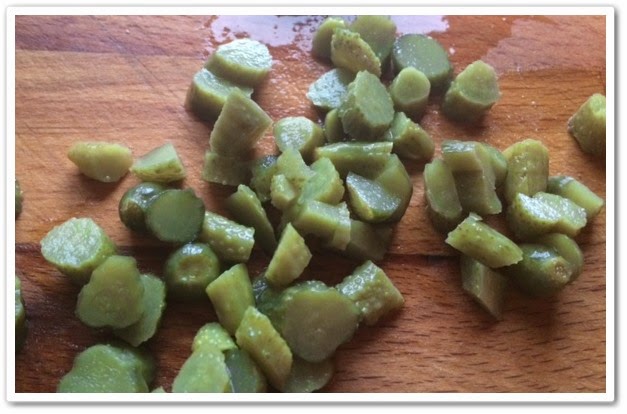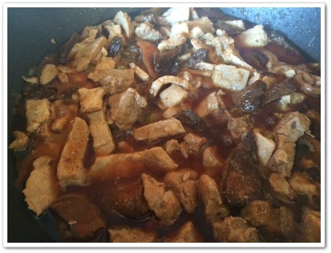 Picamos los pepinillos muy pequeños y añadimos.dejamos que se haga poco a poco hasta que la carne este muy tierna.