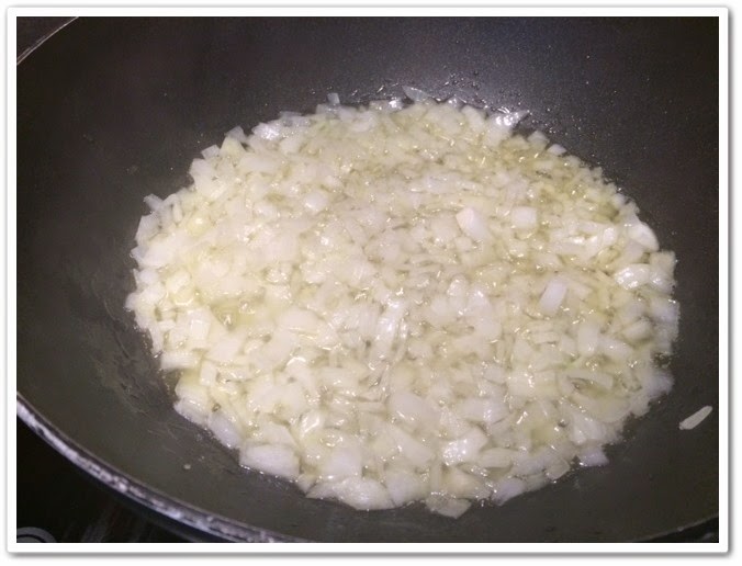 Cortamos las cebollas finita y la ponemos a pochar al mínimo.