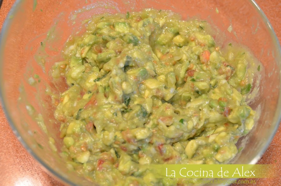 Juntamos todos los ingredientes en un bol con aceite, unas gotas de lima y sal. Mezclamos con una cuchara hasta que consigamos el guacamole.