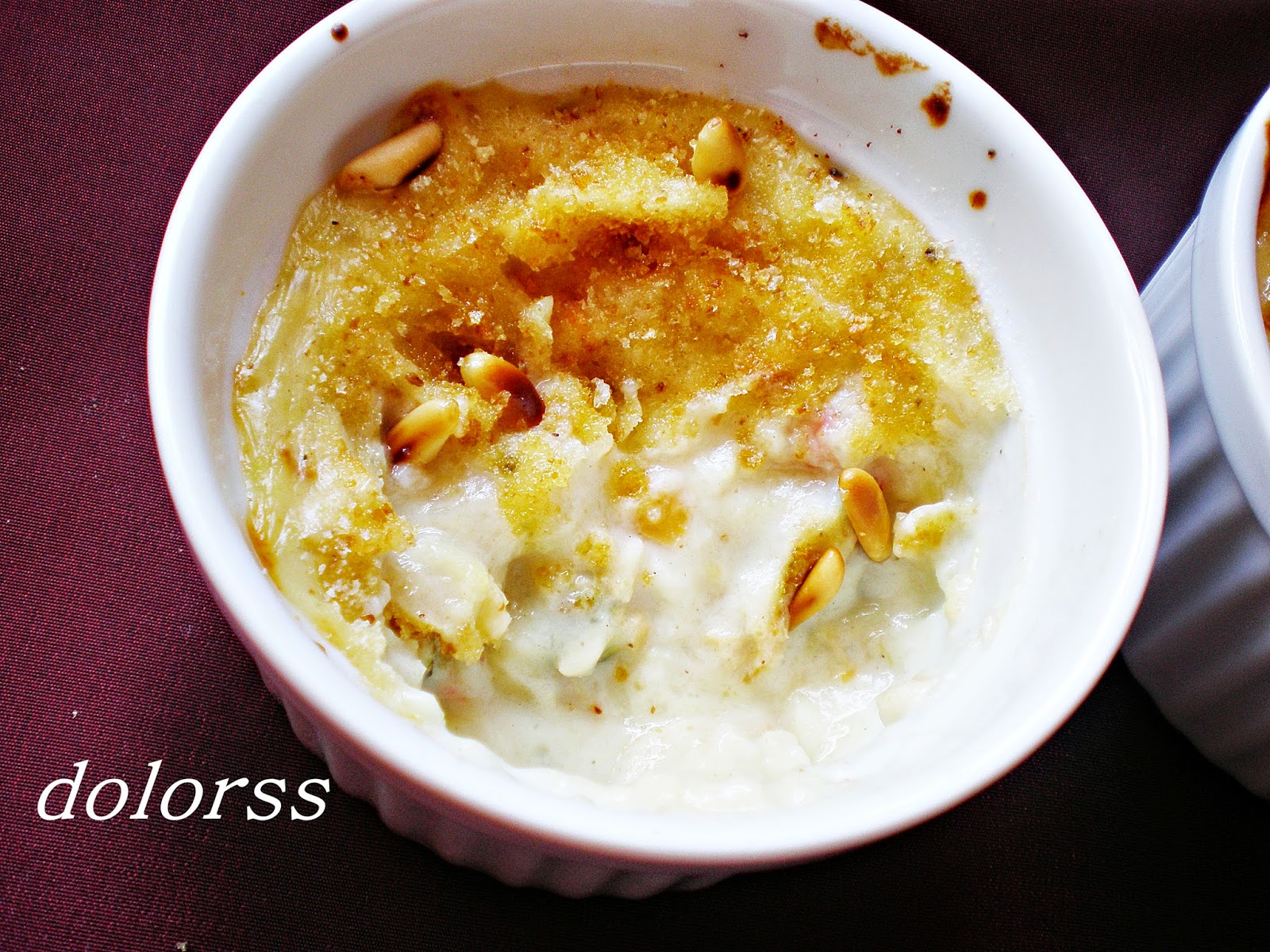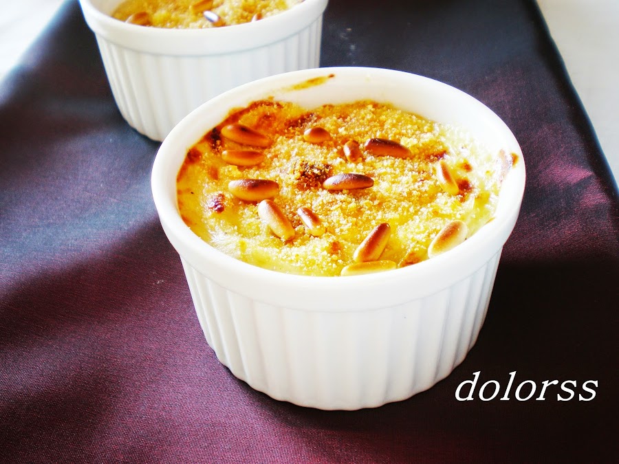Verter en moldes individuales, esparcir por encima pan rallado y unos piñones.
