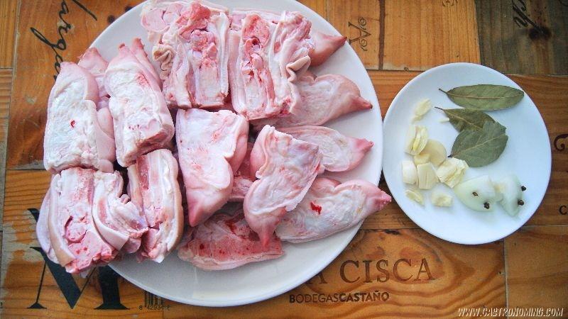 5 und manitas de cerdo limpias y partidas