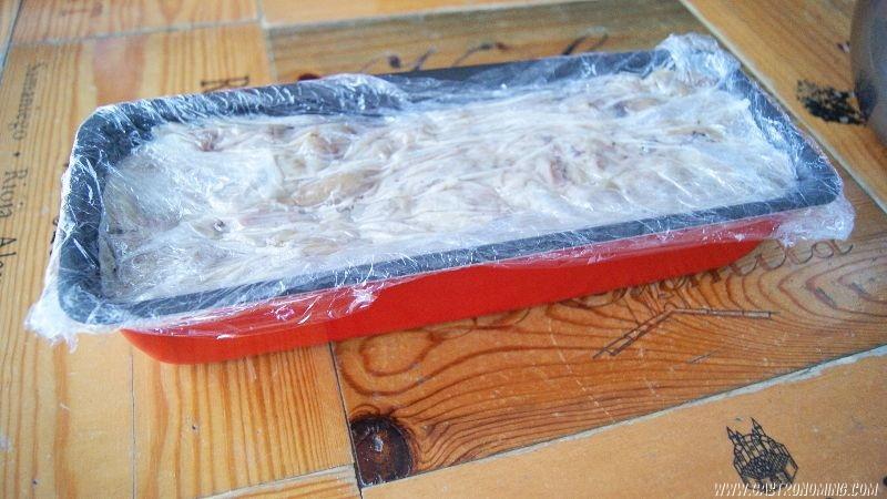 8. Ahora cubrimos con otras 2 capas de papel film aplastando bien para que salgan las posibles burbujas de aire que se hayan podido formar.