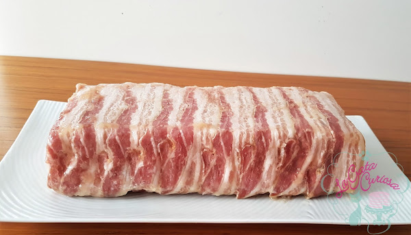 Cubrimos el molde con las lonchas de bacón, ponemos la mitad del relleno, luego unos pocos pistachos más, las pechugas de pollo, el resto de los pistachos, y el resto del relleno, cubrimos con más bacon. Tapamos el molde con papel de aluminio y llevamos al horno al baño María a unos 180º durante una hora y media más o menos (si lo haceis en la slow cooker lo tendremos durante 3 horas en alta)