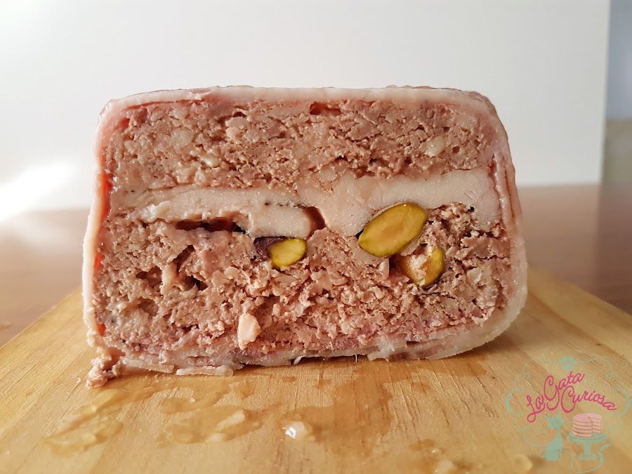 No tenía previsto hacer ninguna terrina para Navidad pero….. Lo cierto es que sobraba un poco de hígado de cerdo de los patés y no nos gusta mucho el hígado de cerdo, además se dio la circunstancia de que también tenía un par de pechugas de pollo y unos pistachos sin sal que compré hace un tiempo y que no había usado, usar mi olla de cocción lenta (la grande) para hacerla al baño maría también me llamaba la atención. Dicho y hecho.