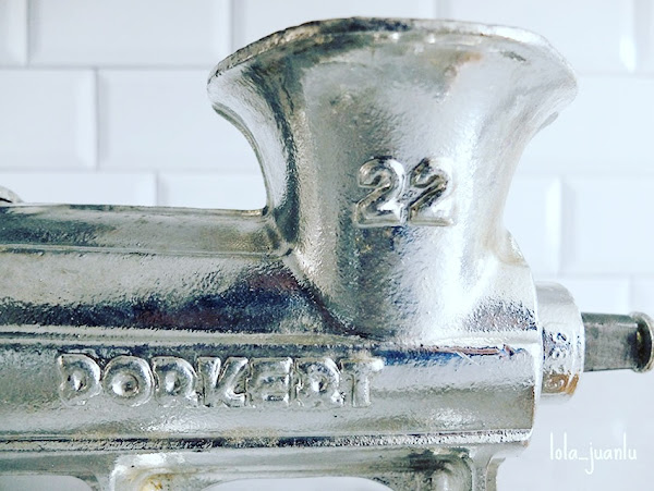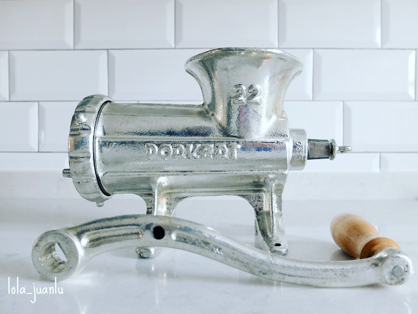 De pequeña, en las matanzas, mientras que los hombres se ponían a preparar los jamones y la comida, las mujeres y los niños nos poníamos a hacer los embutidos y recuerdo que utilizábamos picadoras de este tipo.