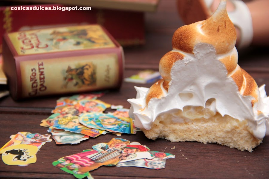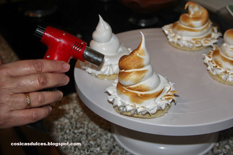 Con la ayuda de una manga hacemos un copete de merengue y, por último, ayudándonos de un soplete doramos el merengue. Si no disponemos de soplete podemos ponerlo unos minutitos al horno con el gratinador.