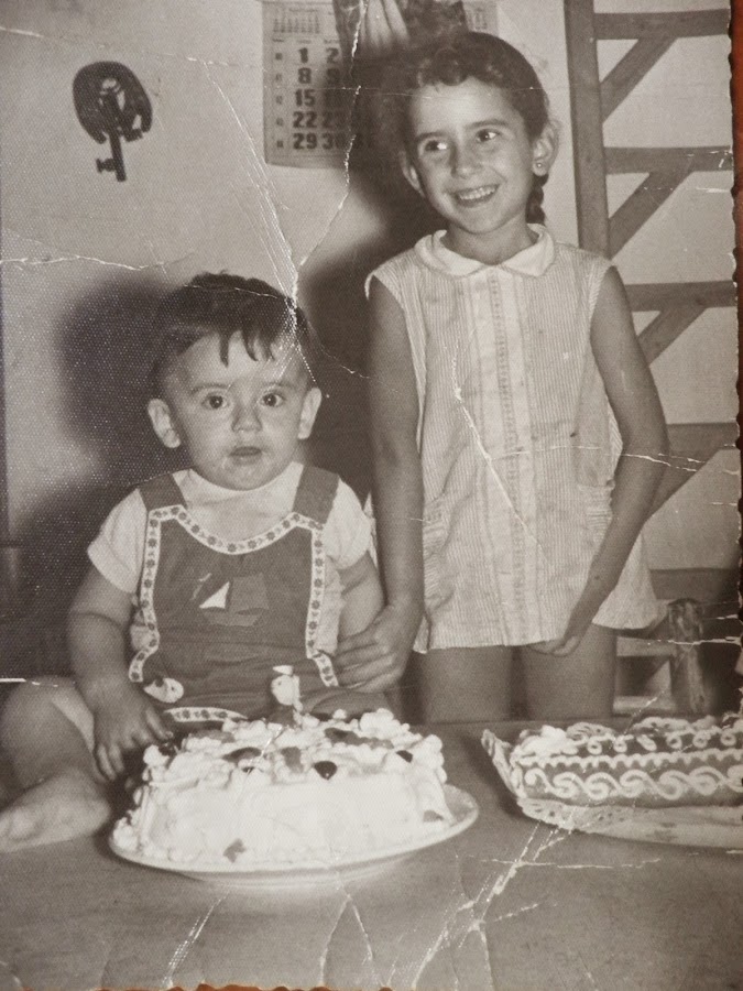 Con esta receta quiero participar en el concurso organizado por las hermanas más graciosas de toda la blogosfera: mis chicas Camilni que con motivo del tercer amiversario de su blog han organizado un concurso en el que nos piden realizar el dulce de nuestra niñez.. He de reconocer que yo tuve una infancia muy dulcera así que no había un sólo dulce de mi niñez. No obstante me acuerdo especialmente de dos que eran muy significativos: el brazo de gitano (que ya os enseñé AQUÍ) y estas tetas de vaca de hoy. He aquí la prueba de mi niñez entre azúcar. La foto es del primer cumpleaños de mi querido hermano (cuanto te echo de menos y cuanto sé que disfrutarías si pudieses ver este blog):