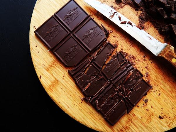 226 g chocolate 60% cacao (utilicé Ghirardelli), troceado toscamenteProcedimiento.